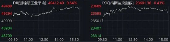 美股三大指数集体收涨,纳指涨0.43%,道指涨0.64%,标普500指数涨0.5%。