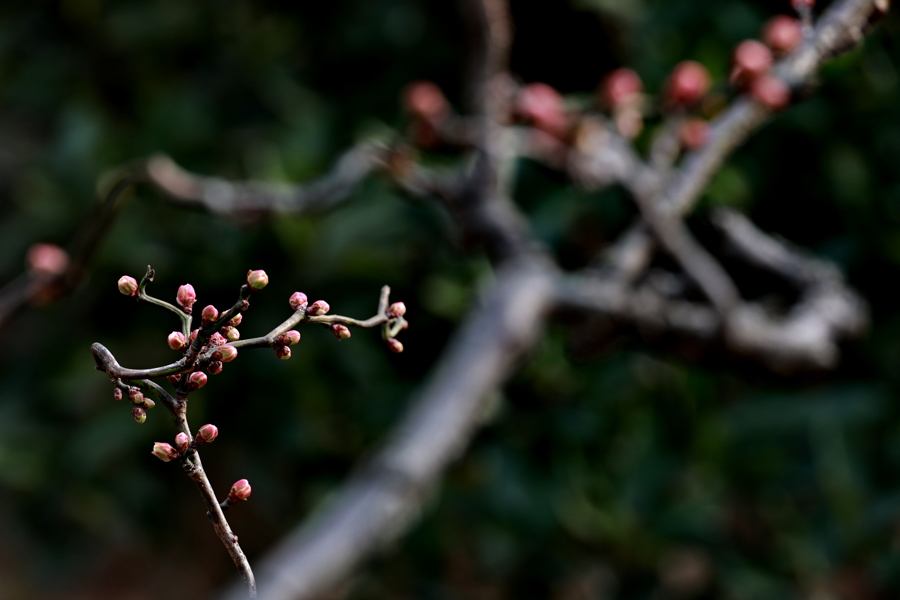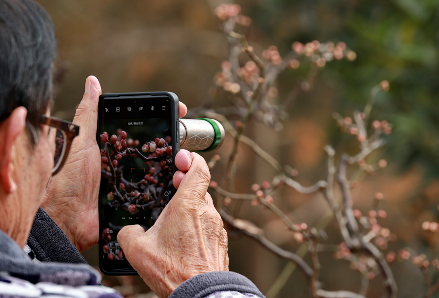 现场更多梅花正含苞待放,各式〝梅〞景吸引市民游客驻足欣赏、留影。